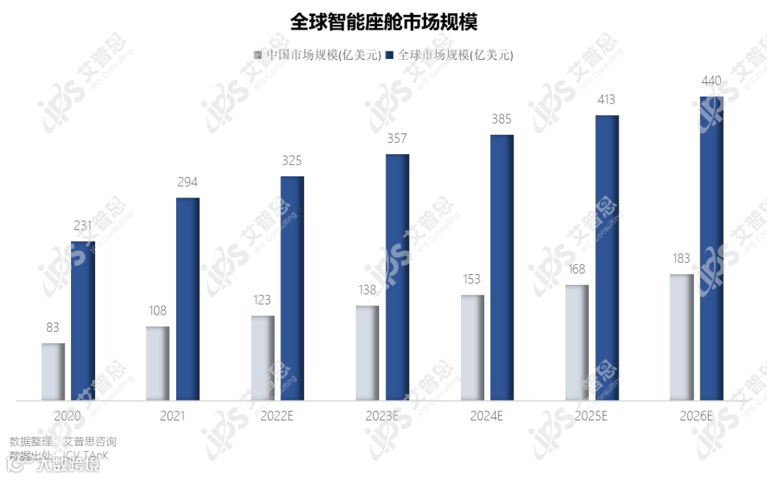智能座舱是智能汽车的重要标志,据ICVTAnK数据显示,全球智能座舱2022年的市场规模为