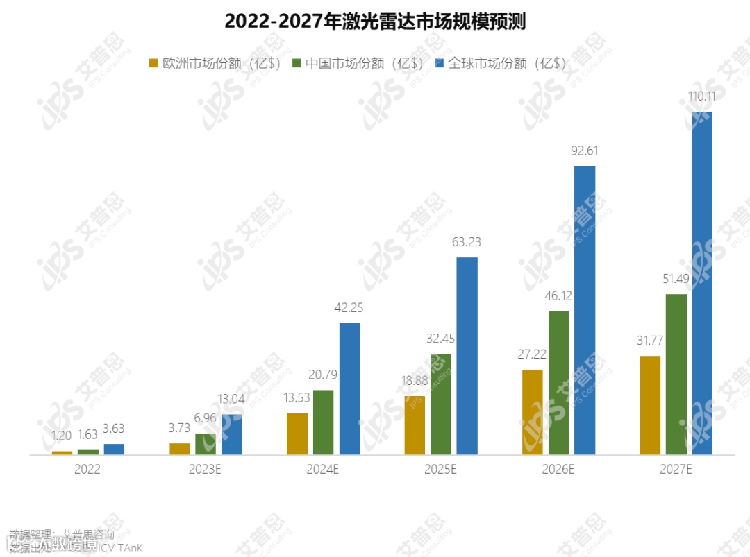 图 11:2022-2027年激光雷达市场规模预测