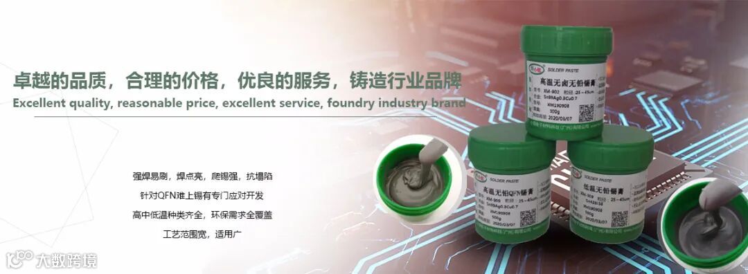本公司产品有:高中低温无铅焊锡膏、不锈钢锡膏、无卤焊锡膏、有铅焊锡膏,QFN/散热器以及LED专用焊锡膏。同时专注于助焊膏的研发与生产,开发出适应各种SMT应用场合的助焊膏,BGA植球返修专用助焊膏、线材专用助焊膏,导热硅脂系列,单双组分硅酮电子胶,焊小铭为旗下品牌。