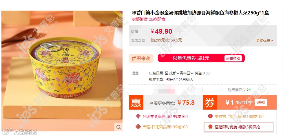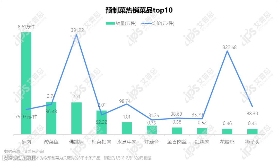 国内某主流电商平台公开数据显示,预制菜相关商品约8千余件,近一个月(2022.1.18-2022.2.18)的销量为39.35万件,交易额为5350.59万元。