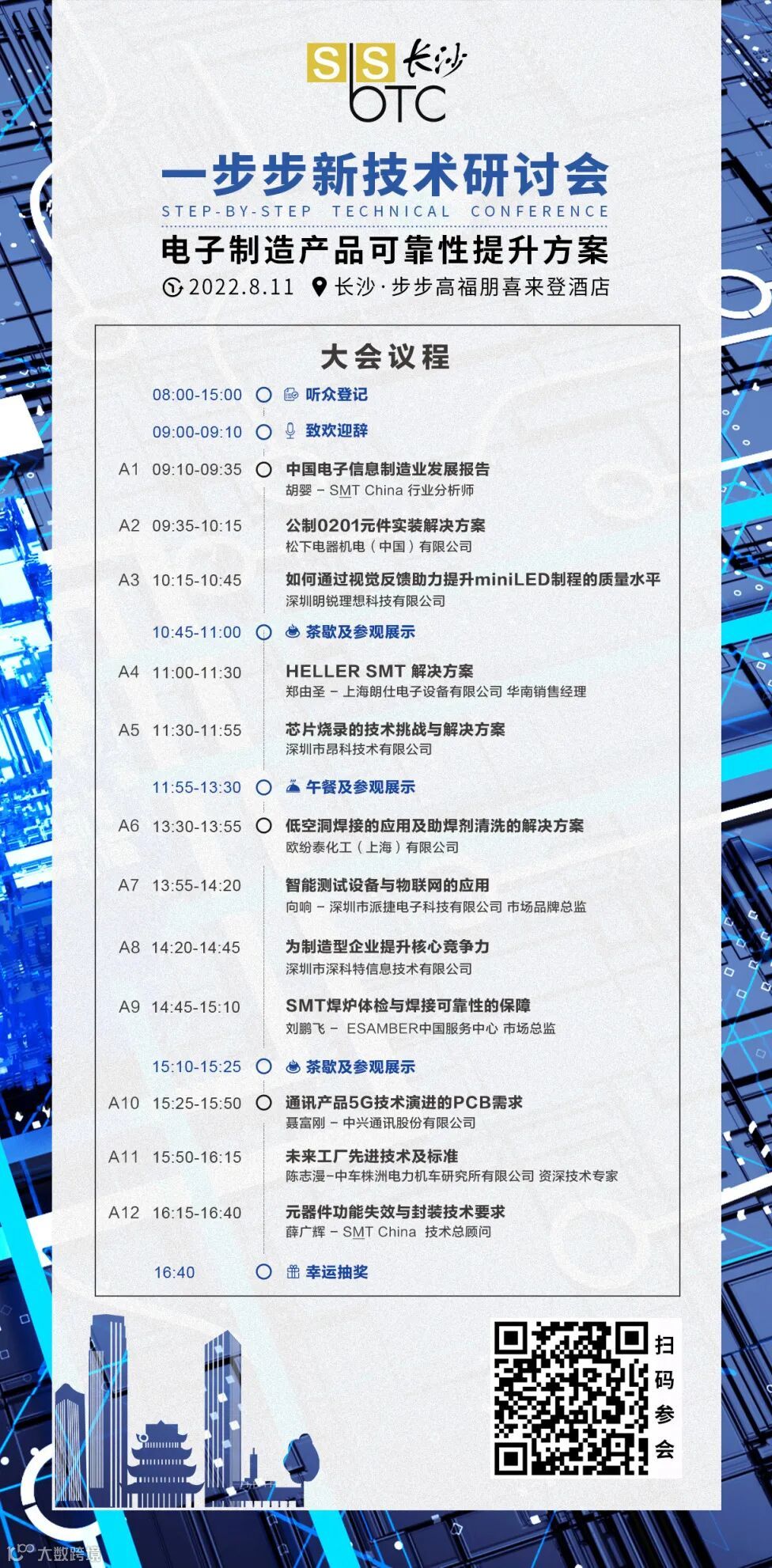 为集聚和放大湖南在先进制造业领域的优势,推动长江经济带发展和中部地区崛起,SbSTC一步步新技术长沙站研讨会将定于8月11日在步步高福朋喜来登酒店召开,会议主题为《电子制造产品可靠性提升方案》,届时将邀请到业内资深实战专家针对当前行业内热门话题展开讨论,并带来最新的技术和产品,提供电子生产企业和业内人士洞察行业趋势、采购生产设备、了解新技术新设备及生产解决方案的新渠道,帮助长沙加快打造重要先进制造业,让其成为具有核心竞争力的科技创新高地。