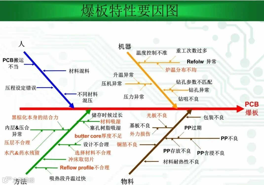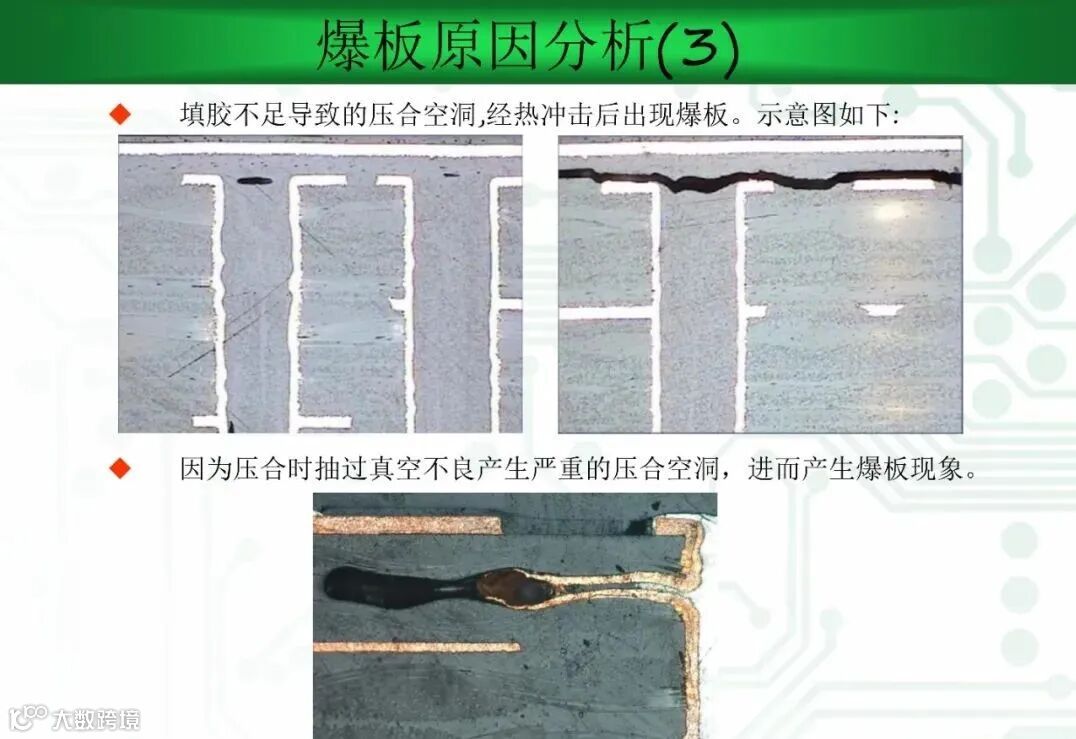 因为当PCB放置于温度超过100℃的环境下,比如回焊炉、波焊炉、热风平整或手焊等制程时,水就会变成水蒸气,然后快速膨胀其体积。