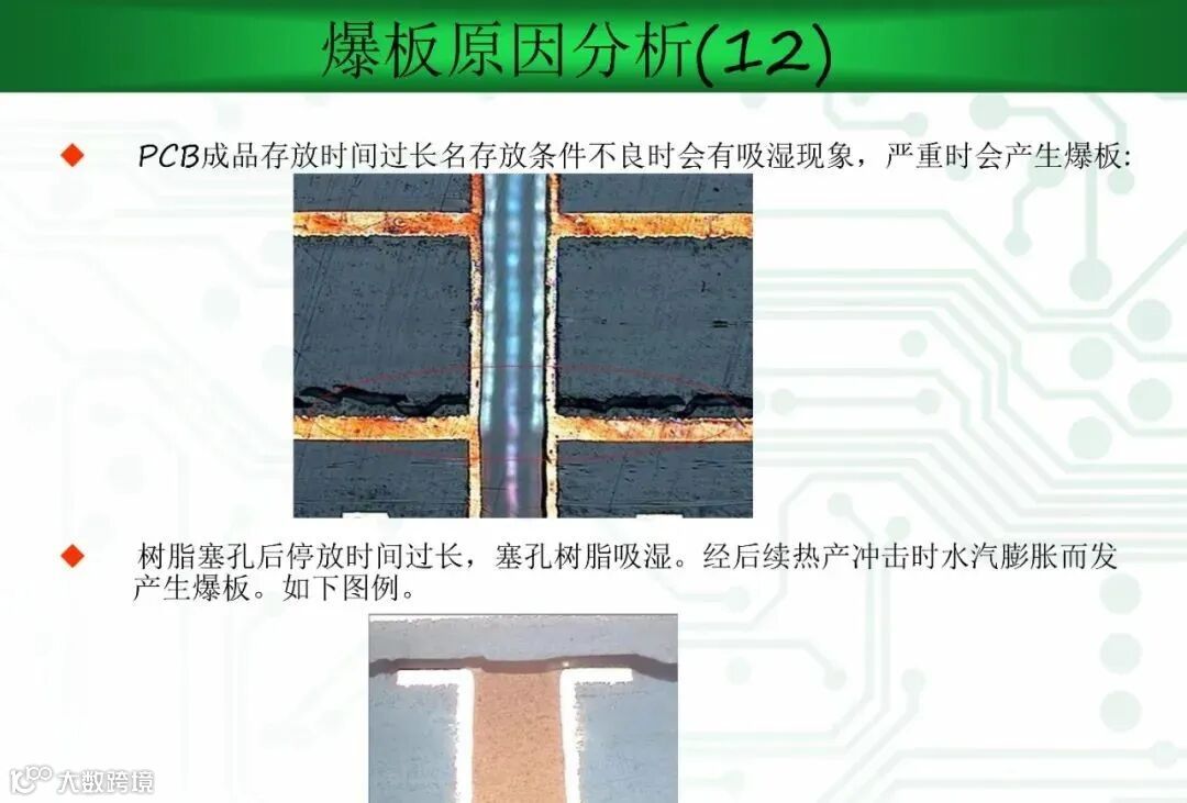 1.PCB 吸湿,高温下水分蒸发,内部产生不同压力