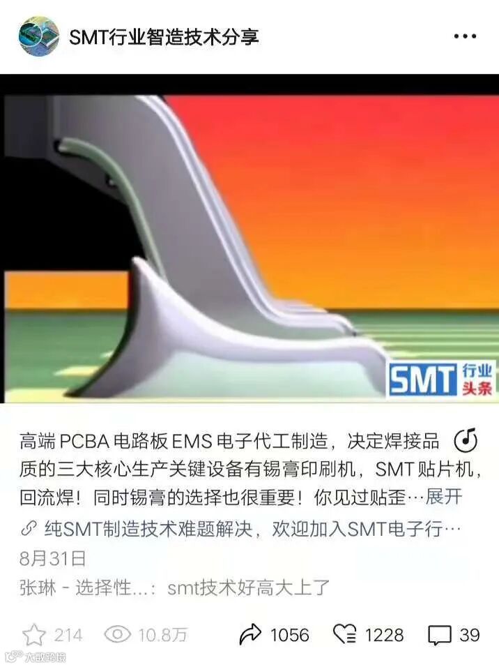 SMT行业头条平台经过多年流量积累和市场口碑沉淀,致力打造电子制造业更多高质量的10万+阅读量移动互联网SMT技术型品牌营销视频号,裂变引流,全方位,多角度,深度营销!SMT行业头条是PCBA电子制造业转化率最高的移动互联网宣传推广平台!