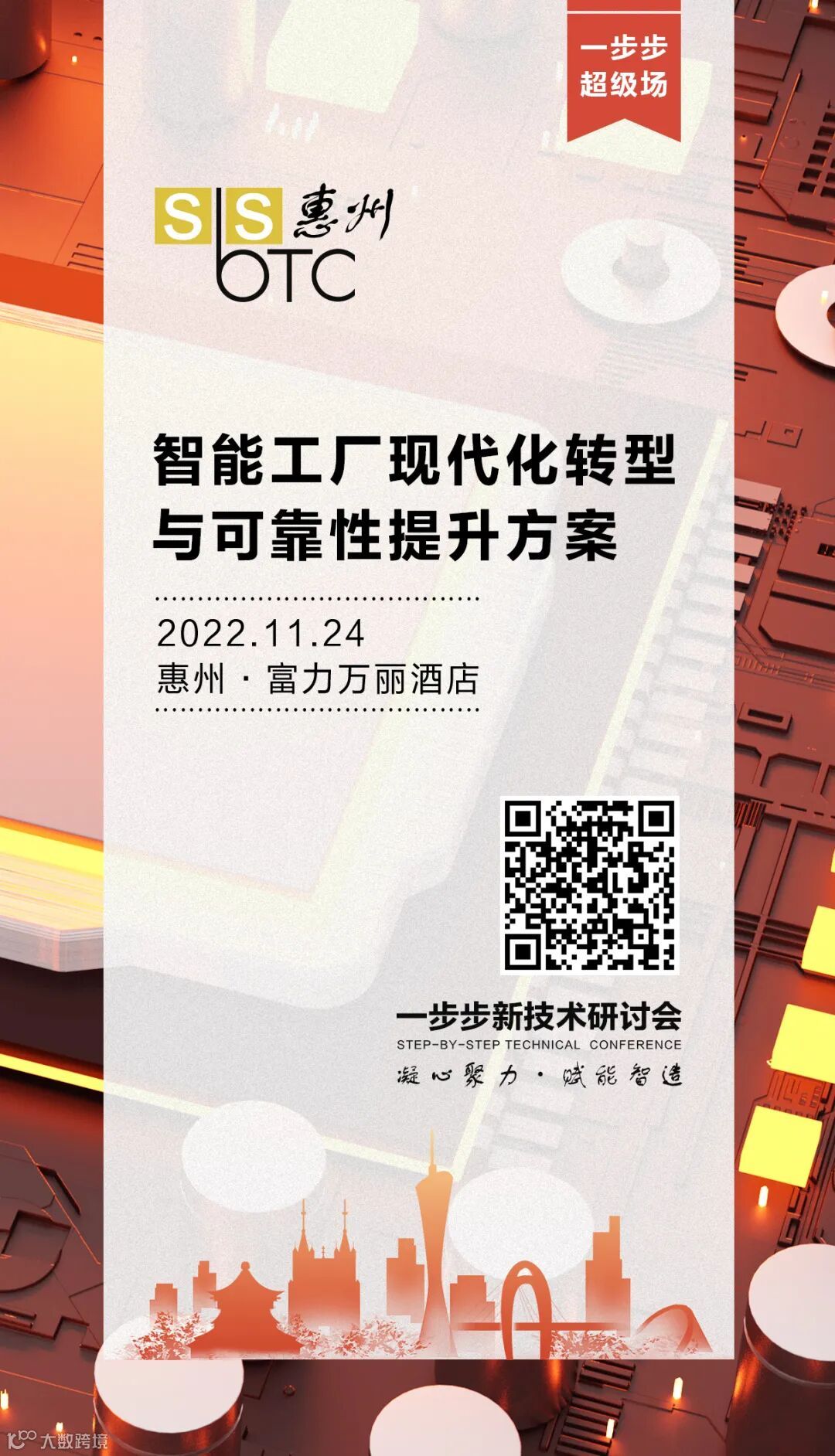 为进一步推动先进智能装备制造业的发展,促进惠州及粤东地区工业转型升级和产业结构调整,帮助电子制造企业加快数字化转型出谋划策。2022年11月24日,一步步新技术研讨会第九次来到惠州,精选《智能工厂的转型升级方案》及《电子制造产品可靠性提升方案》两大主题,在惠州·富力万丽酒店双场同频举办,聚焦智能制造,共享开放创新,欢迎届时拨冗光临。