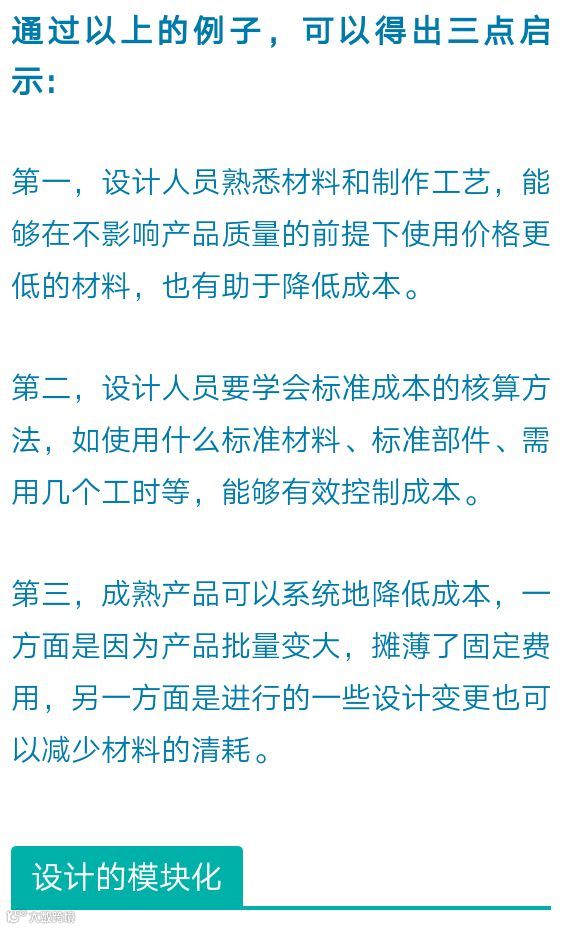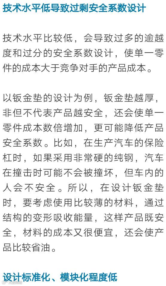 设计人员对工艺不了解,也不进行标准成本分析,不明确需要增加多少材料费、管理费、加工组装费,设计出来的产品的成本就会很高。