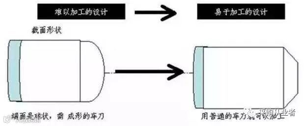 如上图所示,设计一个截面,本来的设计是圆形截面,如果把该零件的截面设计成圆形,就要开发专门刀具,这样成本就会很高;而把它的截面设计成梯形之后,就很容易制造了。
