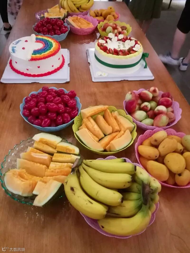 香蕉、哈密瓜、桃子……满桌的食物