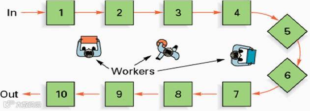 另外当有些生产环节生产节拍时间慢于整条线的节拍时(如新人等原因),其他工位可以及时给予支援,但这要求各个员工具有多项岗位培训和操作技能。