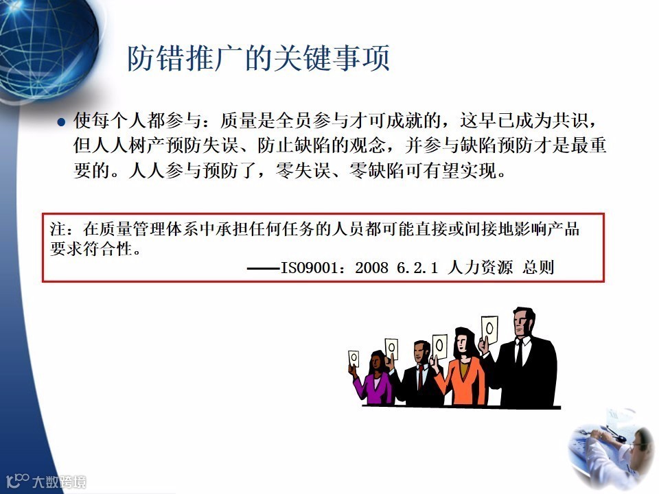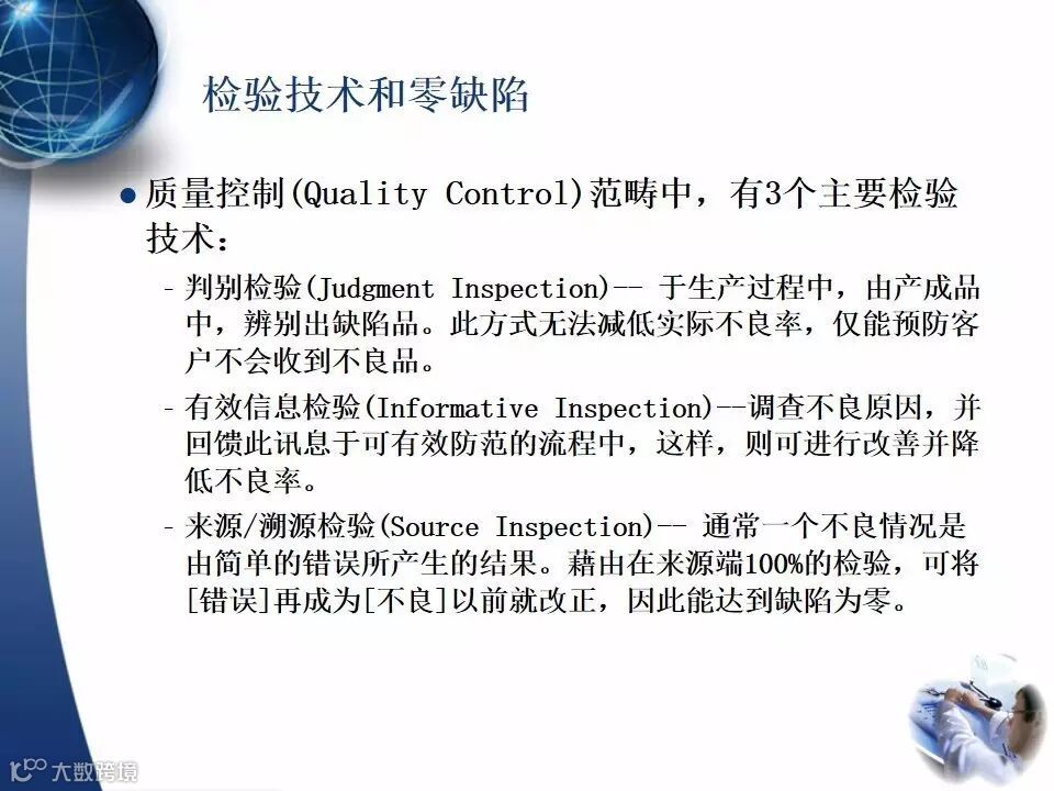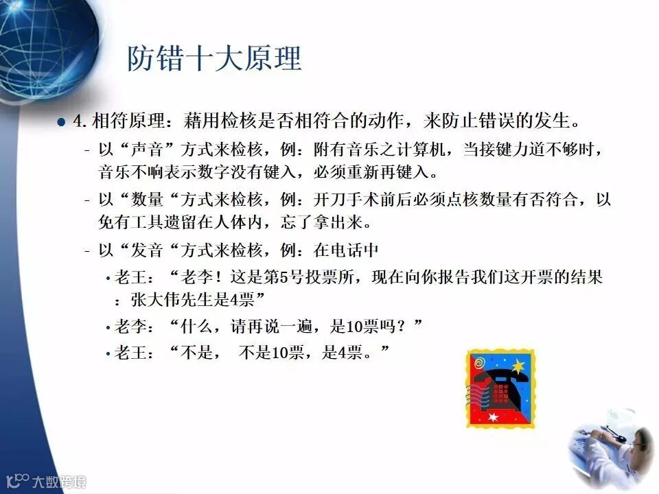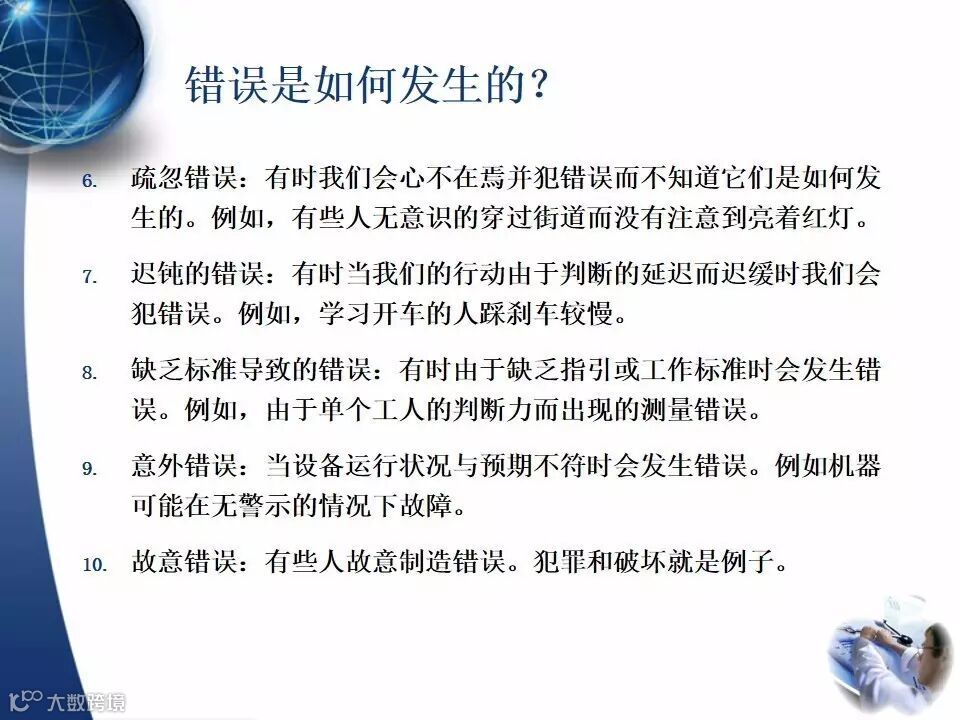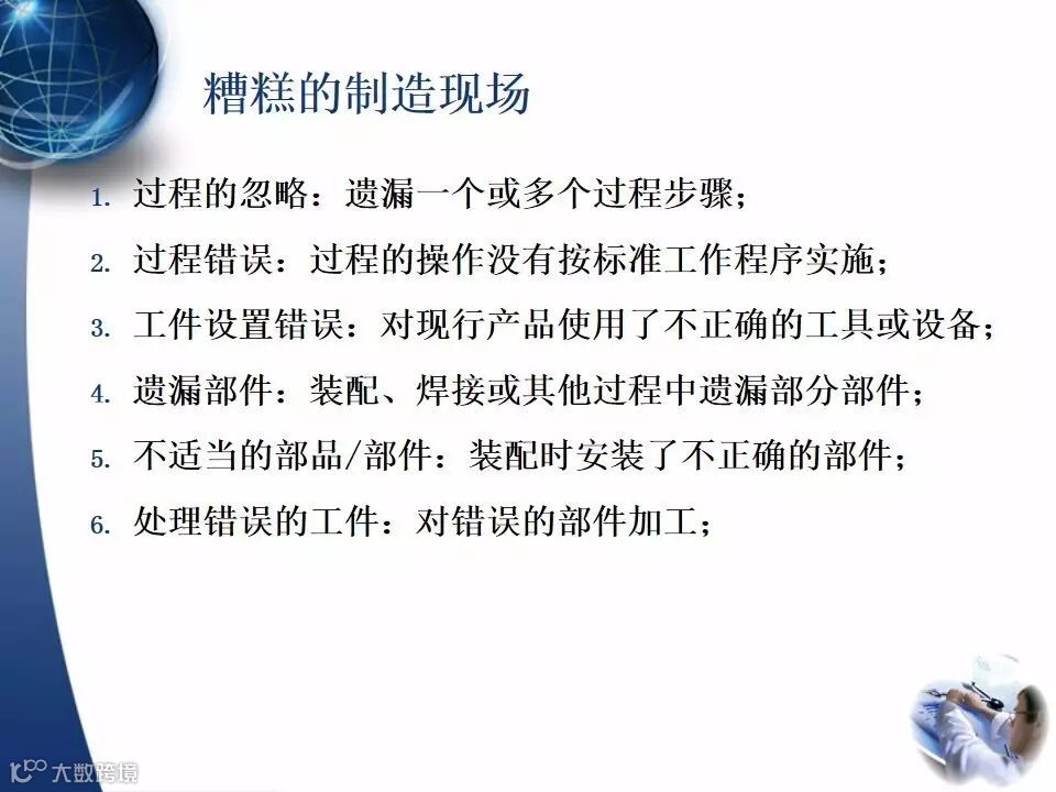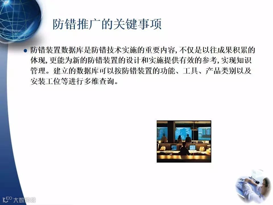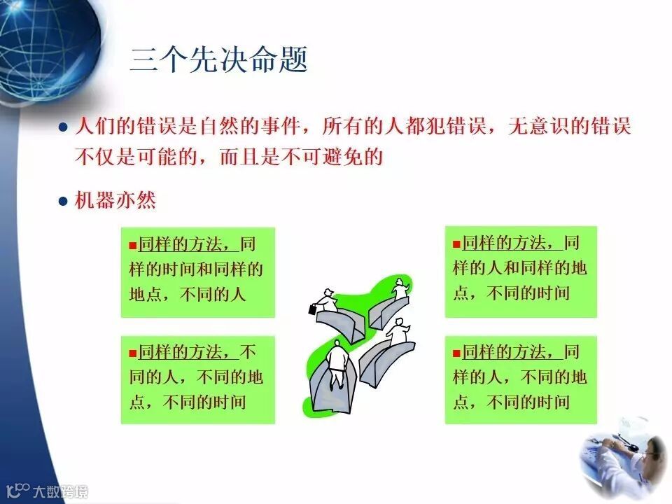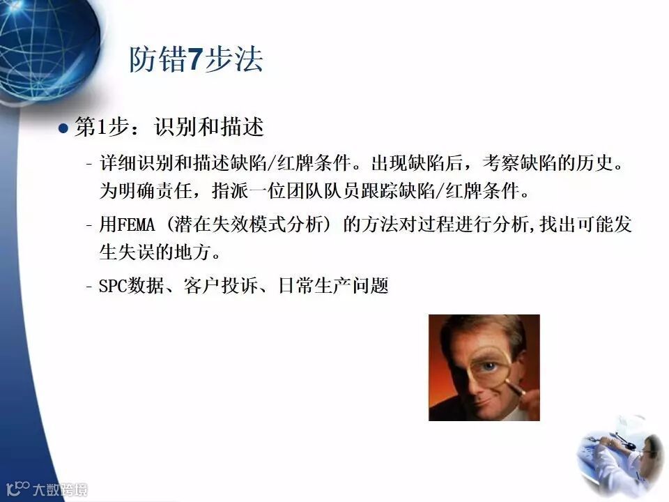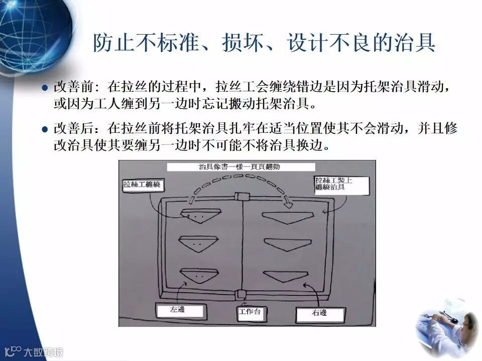 防错原理是通过究源性检查找出产生缺陷的根本原因,设计装置或方法对此差错实现100%检验,避免缺陷再次出现的方法。