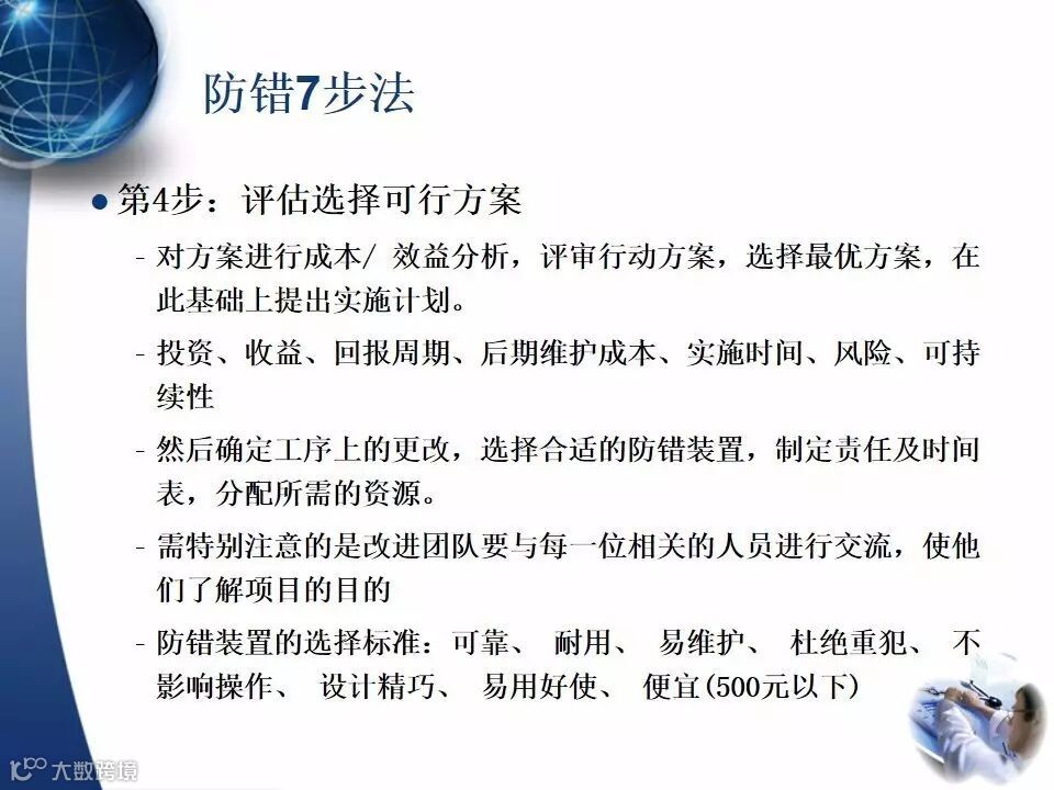 但是从故事中,有几个非常重要防错概念已经出来了。成本(对老板),方便(对员工),稳定性(对于解决问题),这三个标准请各位朋友一直放在心里,并结合下面大量的案例进行体会。