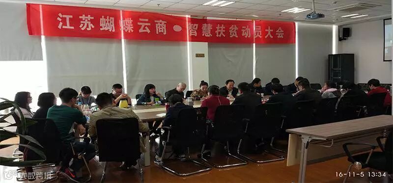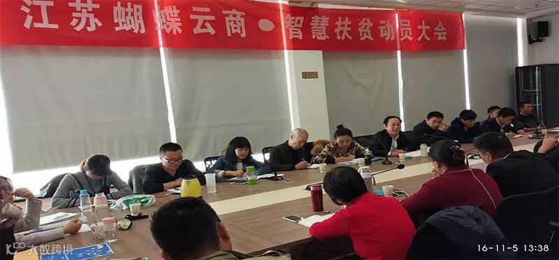 2016/11/07 10:47:17 2016年11月5日,江苏蝴蝶云商•智慧扶贫动员大会在南京雨花台区互联网软件创业园召开。本次会议主要围绕“智慧江苏 精准扶贫”的主题来展开,弄清楚“我们到底要什么?我们该怎么办?怎样把首个云平台的布局落实到乡村、农户和百姓?”