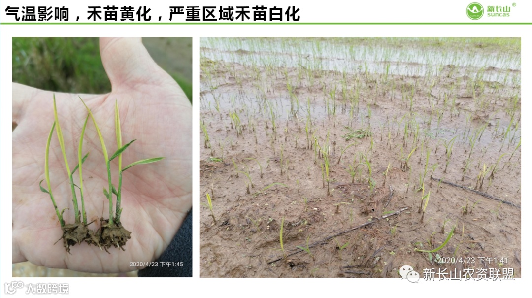 早稻水稻整体生长较弱,水稻白化苗、黄化苗现象大面积发生。大多数种植户担心药害出现,导致除草时间整体推迟。
