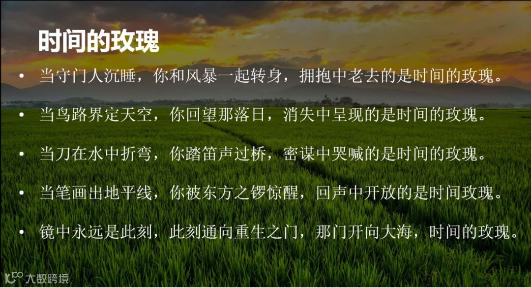 最后,张总以一首北岛的诗:时间的玫瑰,结束今天的演讲。