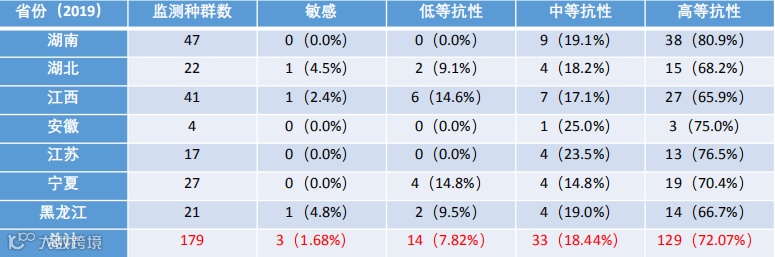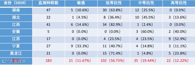 数据来源于湖南省植物保护研究所杂草抗药性检测中心