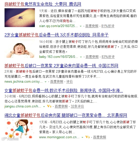 近日,媒体报道了一起因为抠破蚊子咬的包,2岁女童伤口变成黑紫色,后检查发现罹患坏死性筋膜炎,且一度有生病危险的新闻,看的人心惊不已!