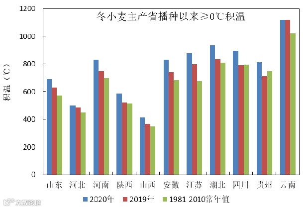 各主产省(≥0℃)积温较常年同期多50~200℃。