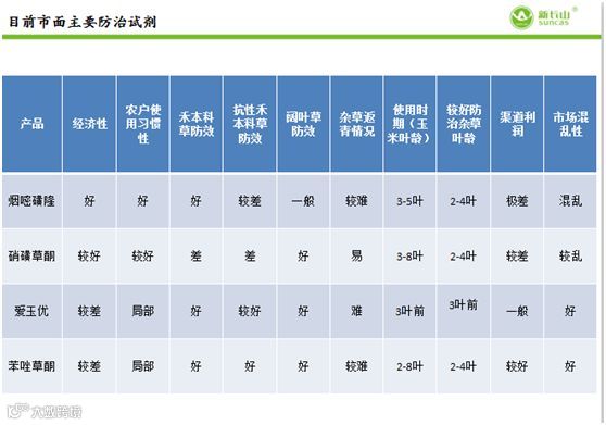 当前玉米田防治杂草大体上还是烟嘧、硝磺、莠去津之间复配为主,也就是说在3-8叶时,喷洒下去,但是往往发生剂量不准确,杂草抗性大大增强的同时,又出现大量药害,从而损失较大,接下来小编就和大家分析几种常见药剂的优缺点。