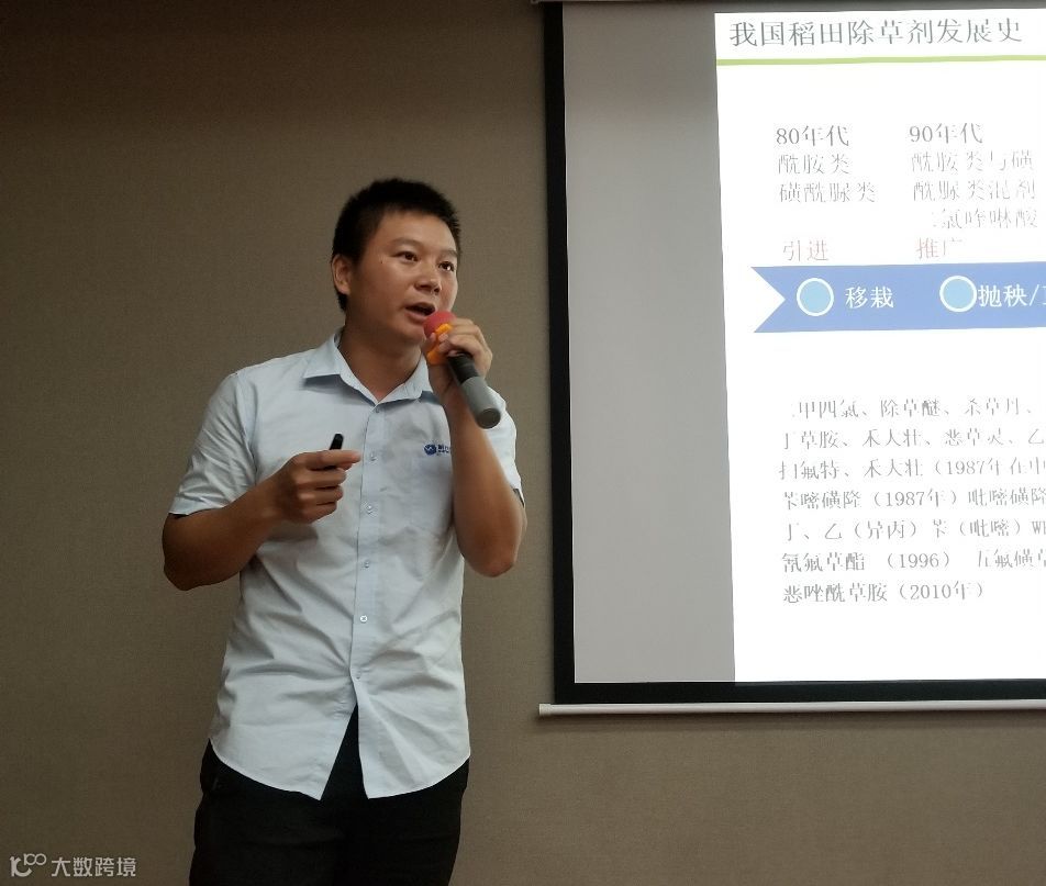 新长山市场部除草剂产品经理,颜益宇老师,讲解了除草剂的发展历程,抗性杂草的发生情况,颜老师对早中晚稻,禾苗与稗草,千金的生长情况,进行了深入研究,并在会上进行讲解,提出了新长山除草剂全程解决方案,以及最佳防治时期。