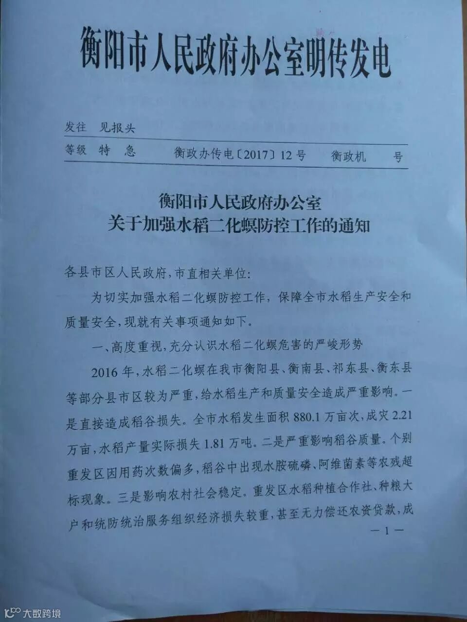 政府急电:高度重视水稻二化螟防控工作!