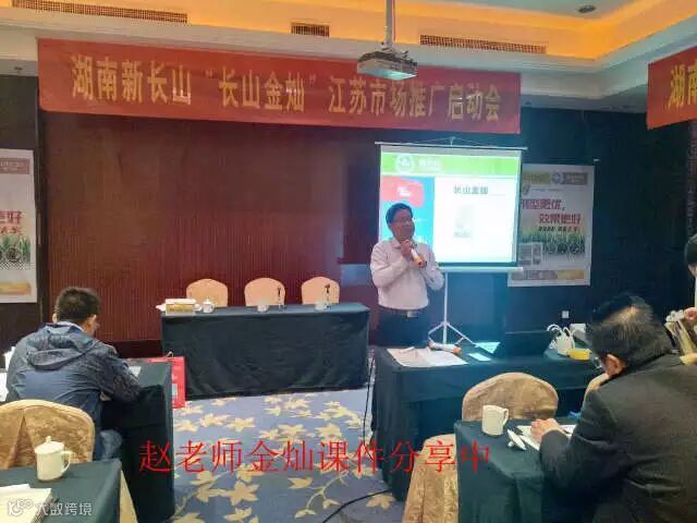 会议特邀专家江苏农业科技报主编,江苏农资领域权威水清老师做了关于水稻、小麦病害防治报告,水清老师也对长山金灿给予很高评价。
