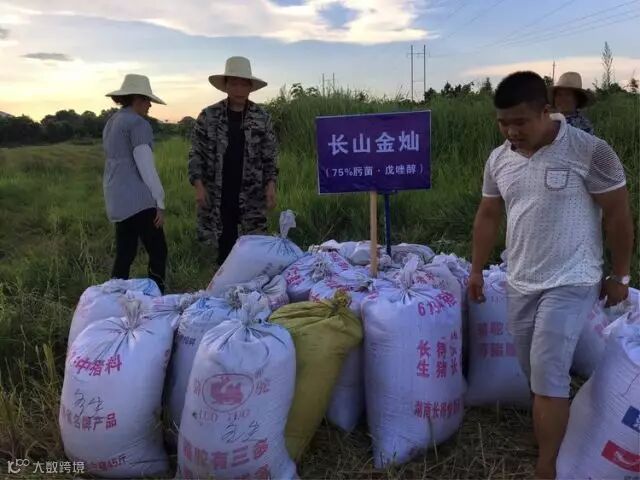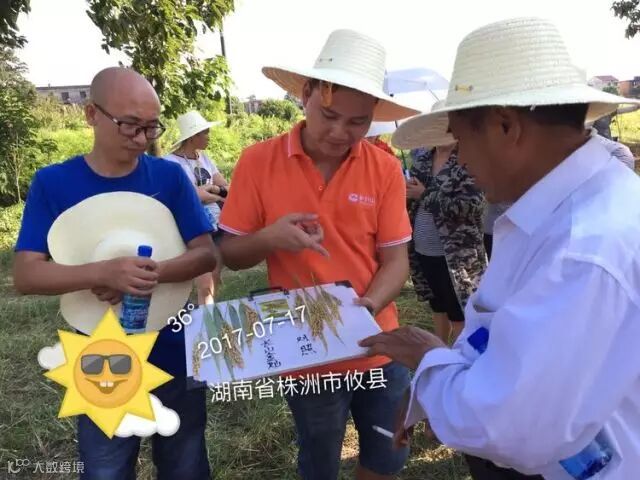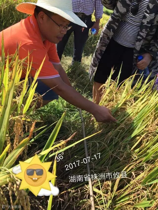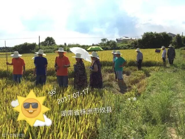 2017年7月17号,大家顶着炎炎蒸日,来到攸县菜花坪尹东升老板的试验田,为的就是见证长山金灿对于水稻病害防控以及增产效果!