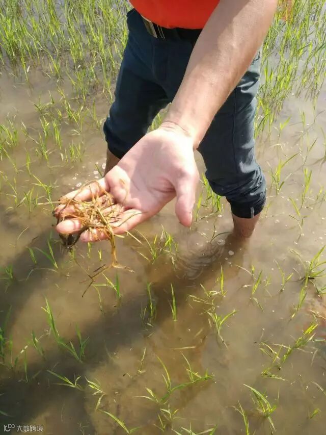 4月18日观察,效果突出,叶龄较小稗草已经变黑腐烂,叶龄较大的稗草茎秆节间都已经变黑。禾苗安全无药害,全部长起来了。