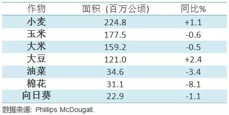 全球小麦和大豆种植地域有所扩大,其他主要作物则是下降。玉米和大米种植面积略有减少,而棉花、油菜、向日葵面积则大幅减少。Phillips McDougall发现,堆积性状转基因作物种植面积进一步扩大。