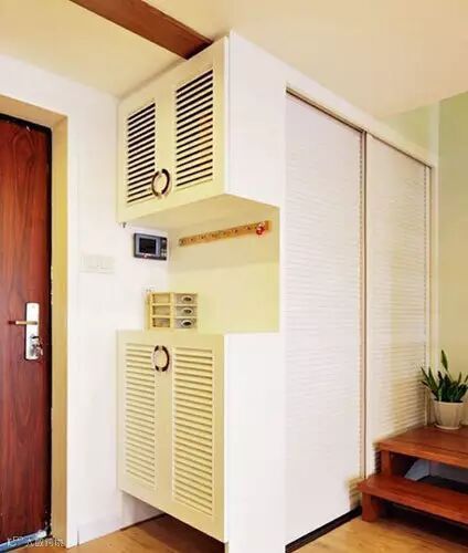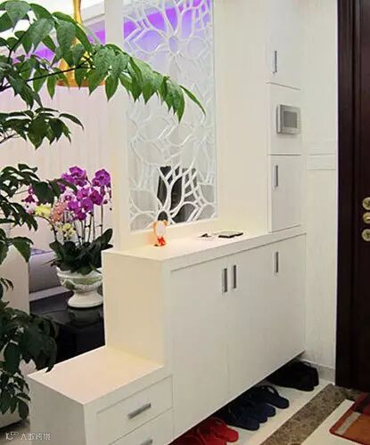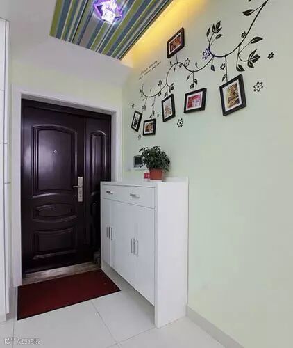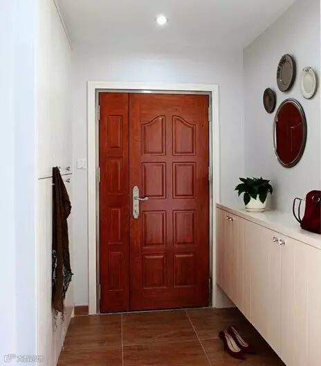 为了起装饰作用也方便家人脱衣换鞋挂帽。最好把鞋柜、衣帽架、大衣镜等设置在玄关内,鞋柜可做成隐蔽式,墙面的简易挂钩充当衣帽架,充分利用立面空间。