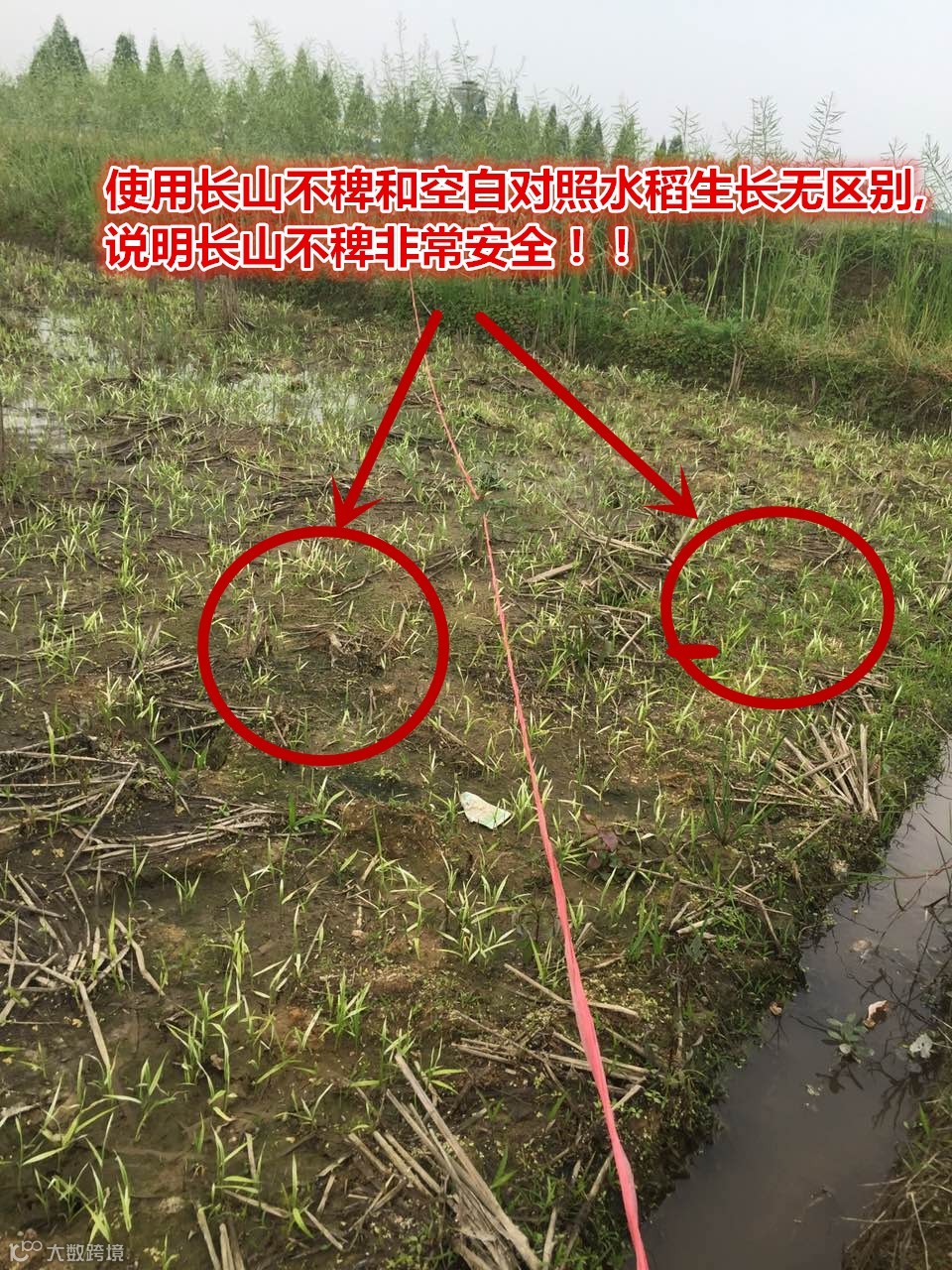 通过和空白对照对比可以看出,长山不稗对水稻生长无影响,除草效果彻底!