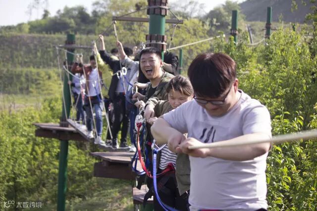 微风不燥阳光正好的天气,同事们褪去往日里工作的疲惫和枯燥,气氛也随着心情变得活跃起来,春游当然不能只是看看风景赏赏花了,还有有趣刺激的丛林吊索穿越项目,看大家笑得多开心啊~~~~