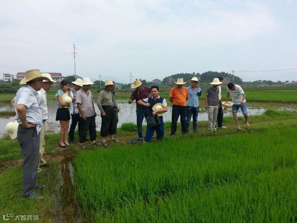株洲区域周经理在田埂边为大家讲解“虎踞”的使用技术以及使用后所带来的好处。