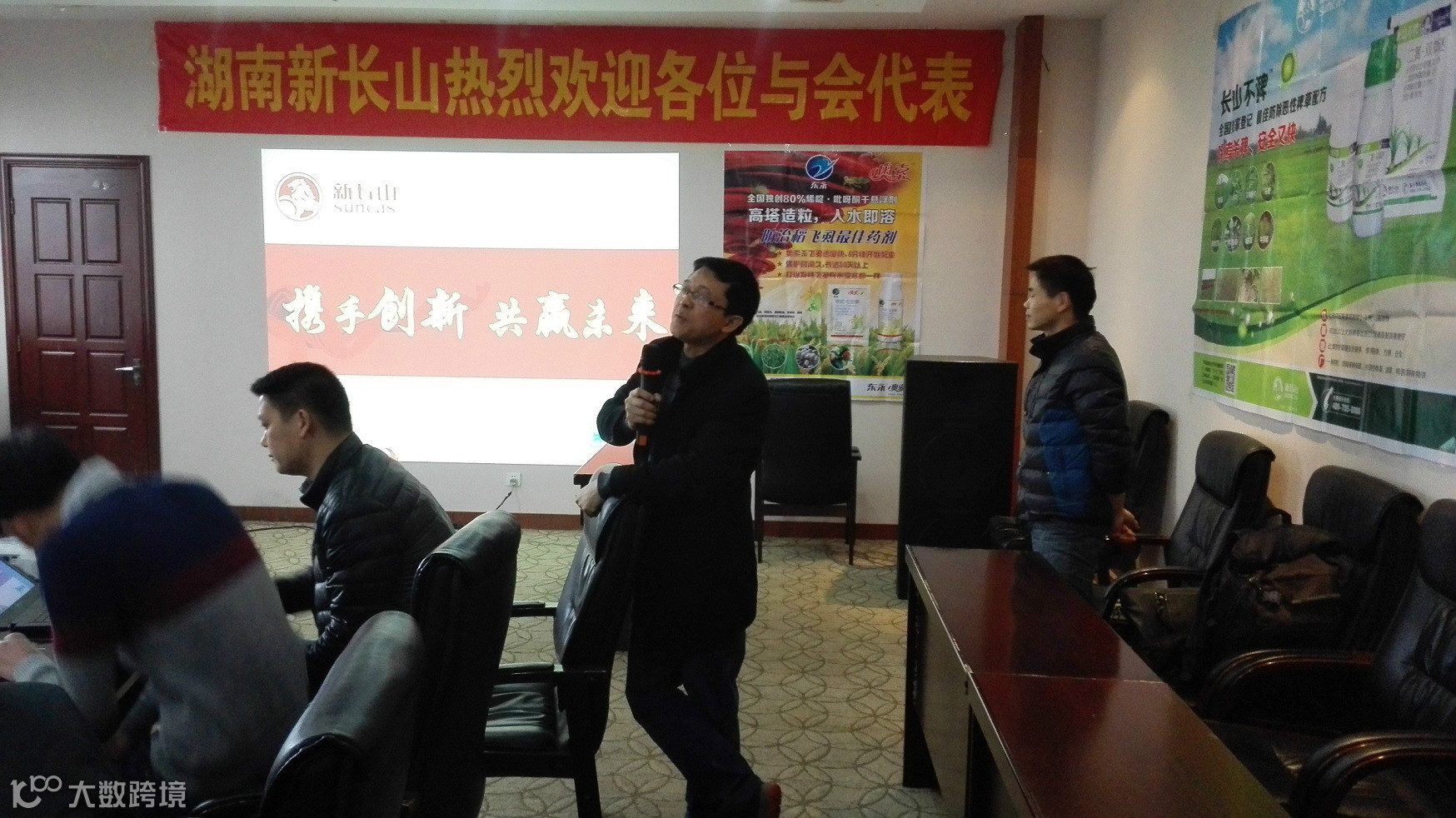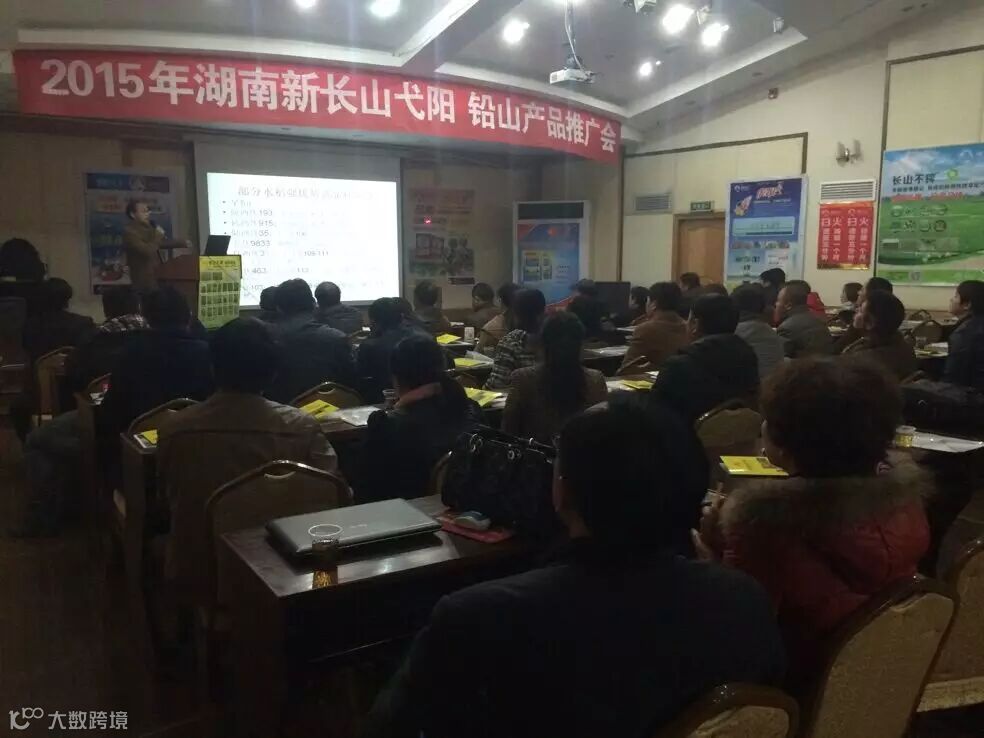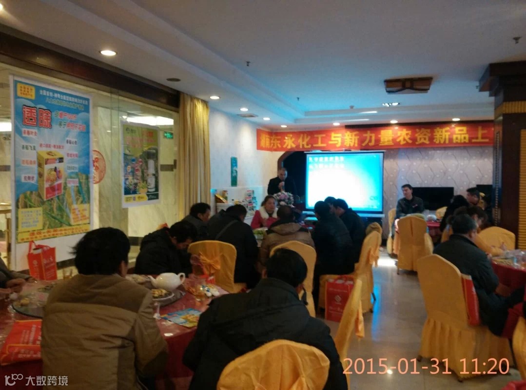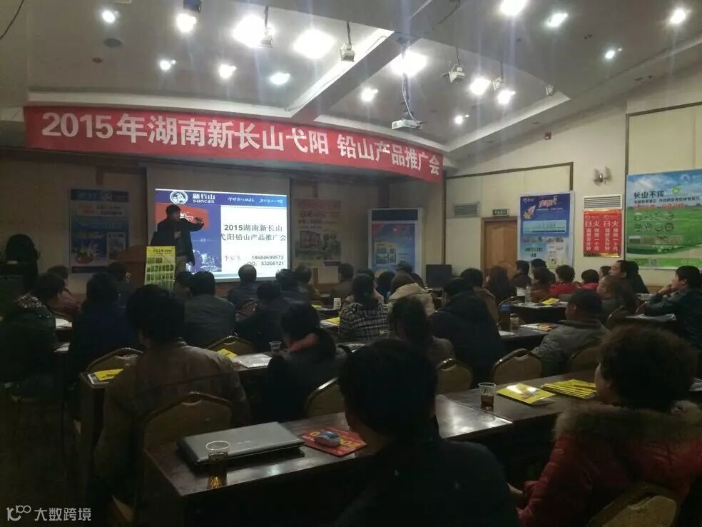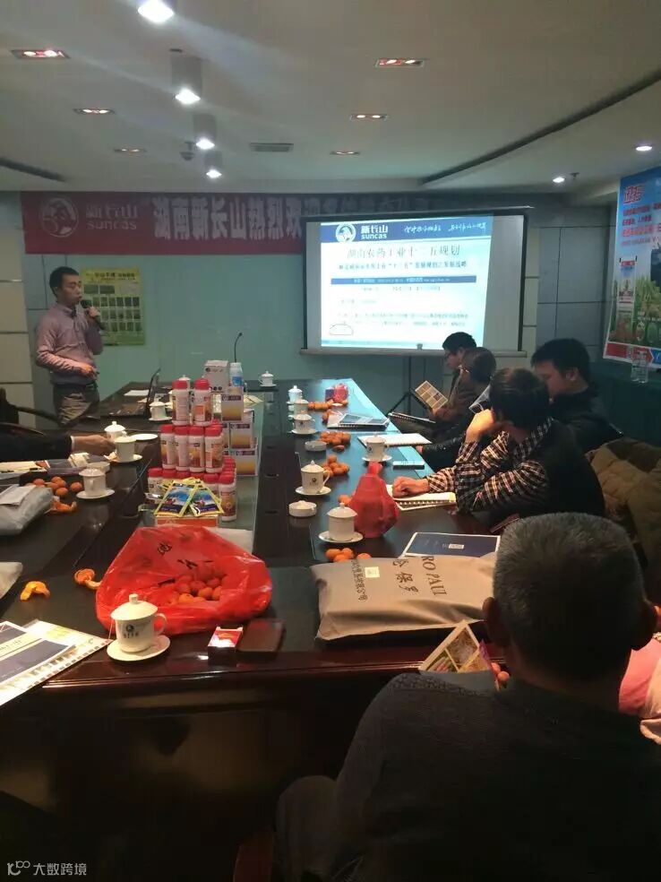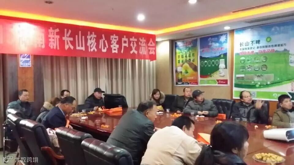 为感谢广大客户对新长山近10年来的支持和厚爱,湖南新长山携手湘阴县兴跃农资经营部于2015年1月24日,在湘阴县中凌宾馆召开2015湖南新长山湘阴客户交流会,会议实到客户29人,18人订货长山不稗152件,扫火106件,全能透除220件(还有两个最大的客户刘细超和黄建军未到,这两个客户能卖到长山不稗150件,全能透除400件,扫火50件),会上客户对明年的产品和市场信心满满,湘阴2015年长山不稗4吨的目标基本没问题!