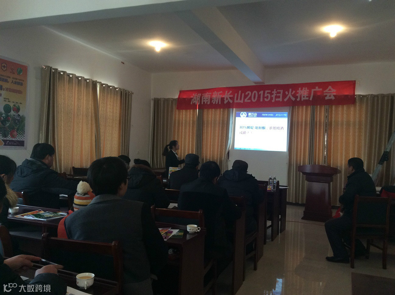 2015年1月31日,地点:江西省吉水县。会议主题:奥索DF剂型讲解,长山不稗。会零售商对奥索df剂型的溶解性非常感兴趣,对长山不稗的除草效果很是期待。