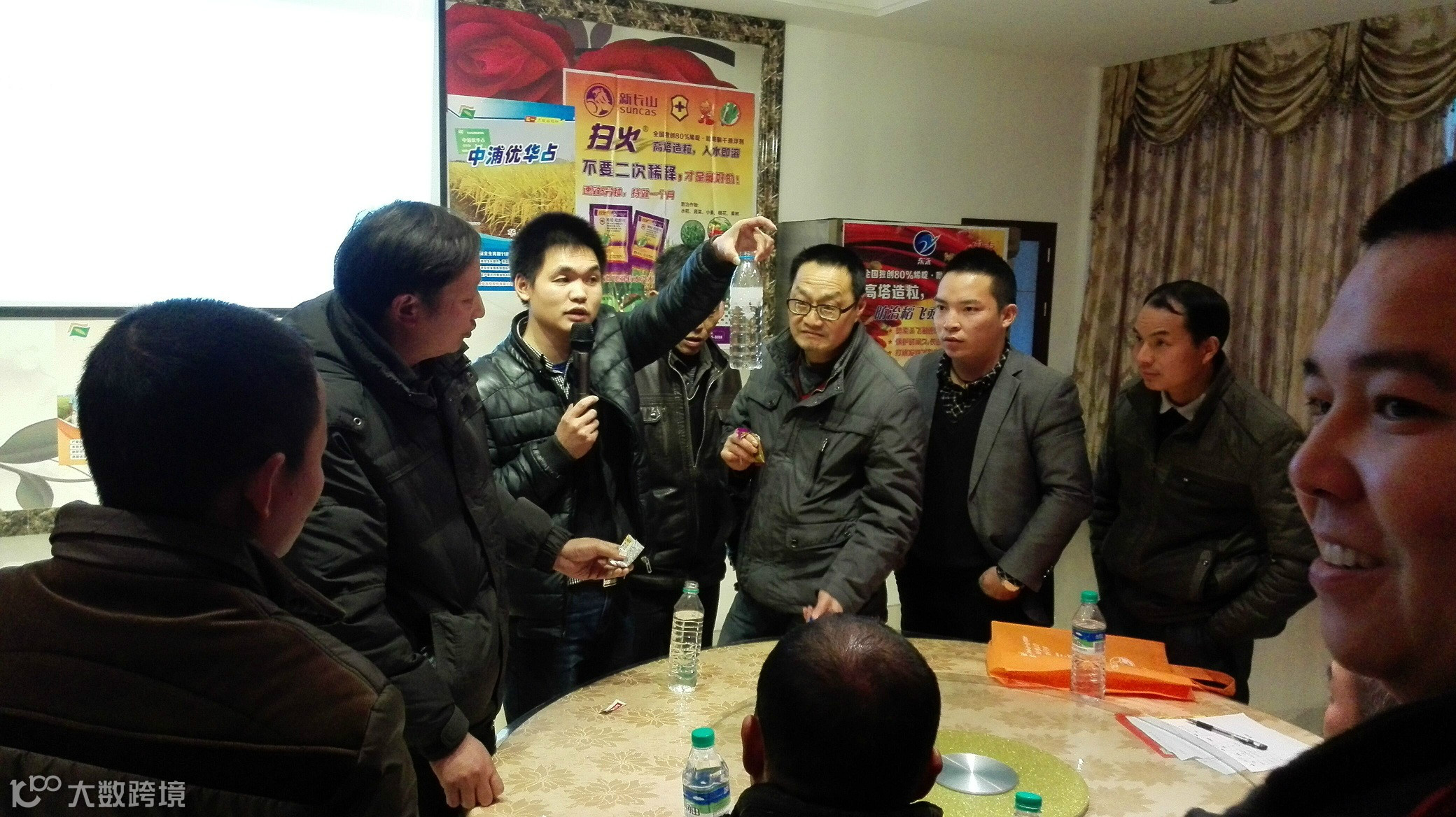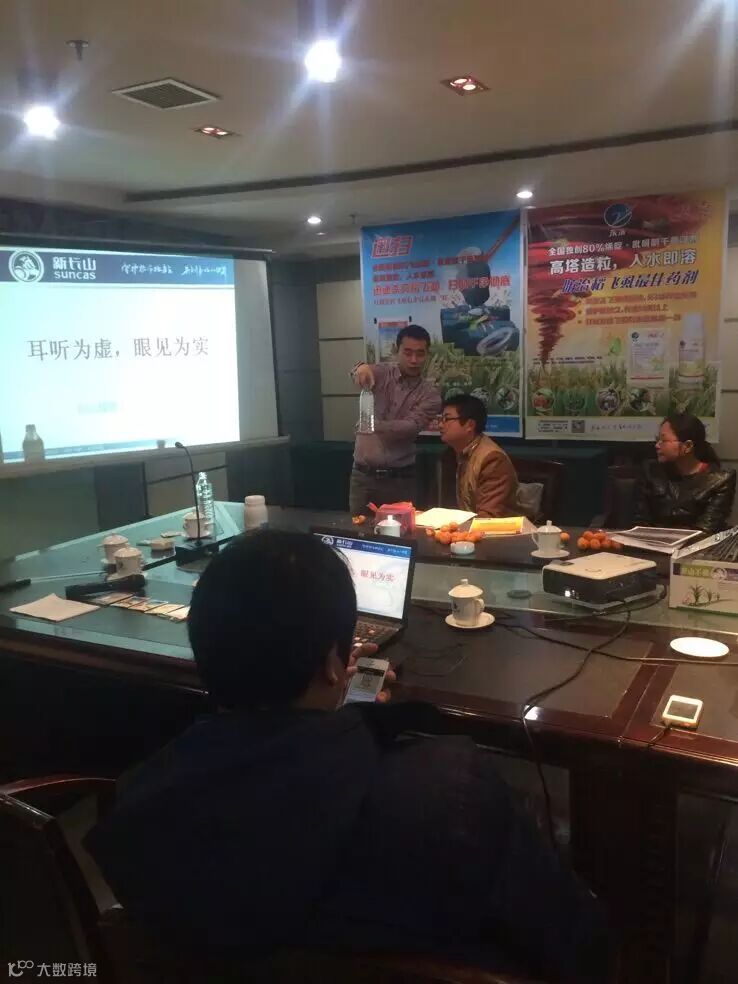 现场试验:耳听为虚,眼见为实,会议中,边讲解课件,边为客户做试验,包括长山不稗油悬浮剂溶解试验,80%烯啶吡蚜酮溶解试验,让许多客户信服。