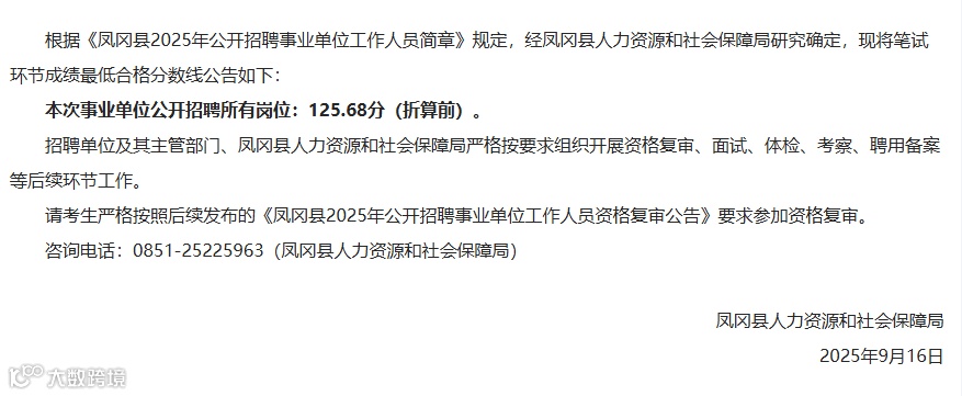 凤冈事业单位笔试合格分数线公布