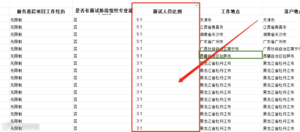 每个岗位的进面比例各不相同