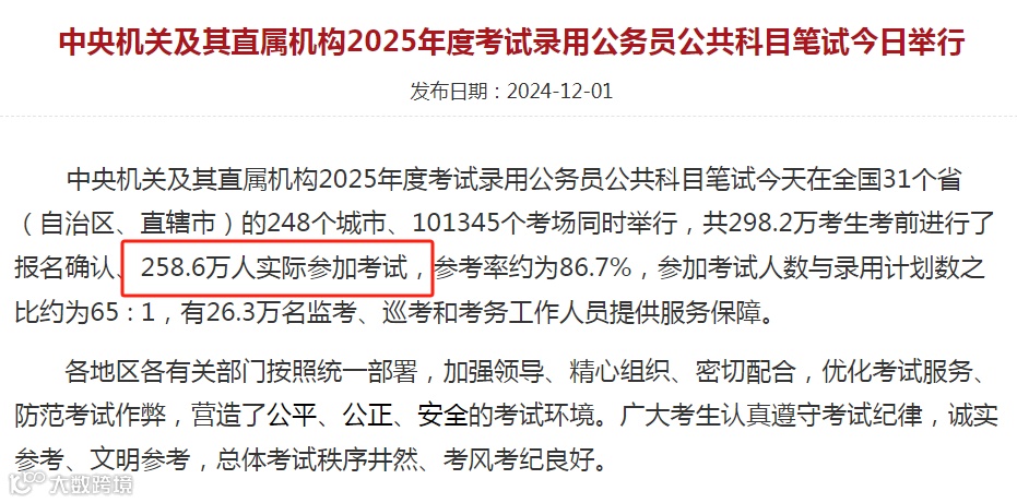 而2025年国考最终有258.6万人实际参考