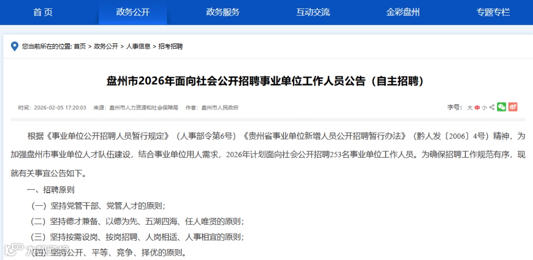 盘州市2026年公开招聘事业单位人员简章