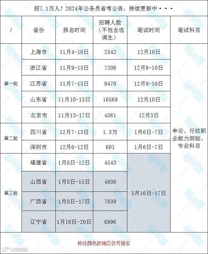 24年多地的省考招考序逐渐启动