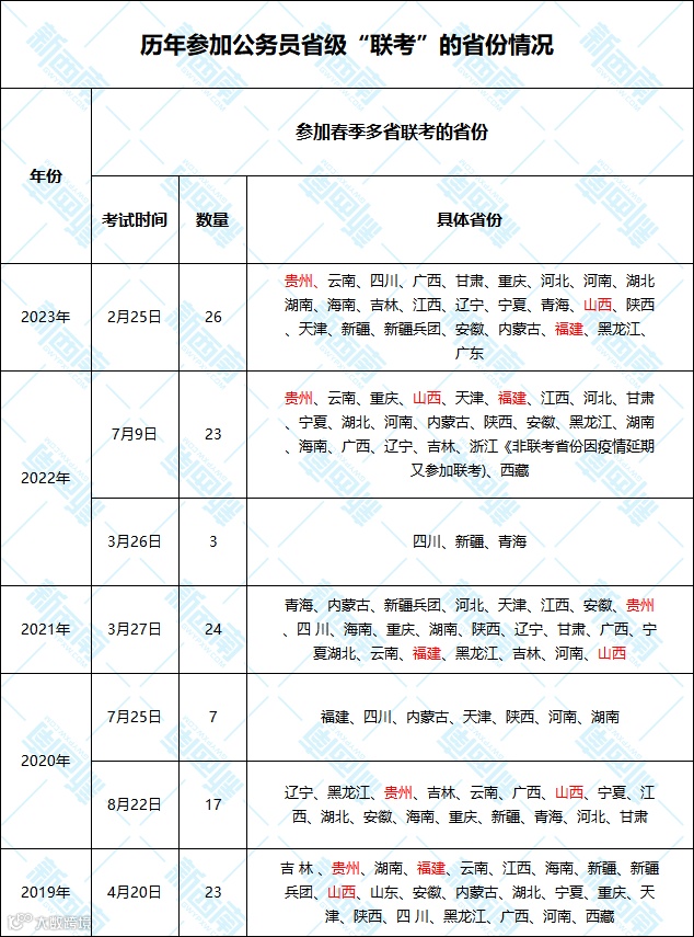 上述省份和贵州一起参加了公务员联考