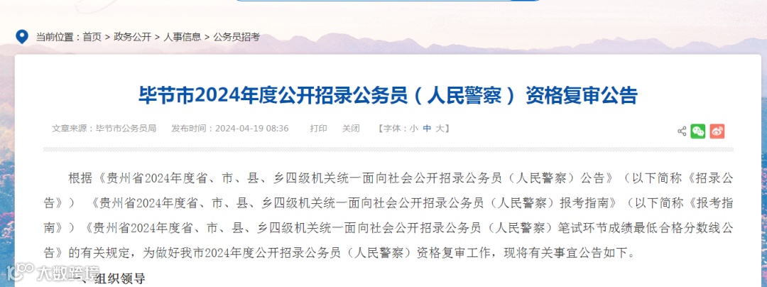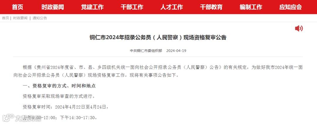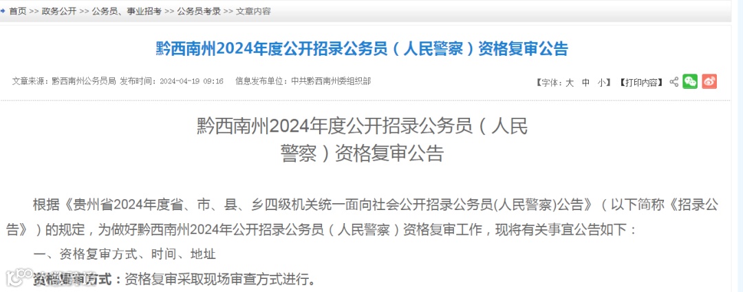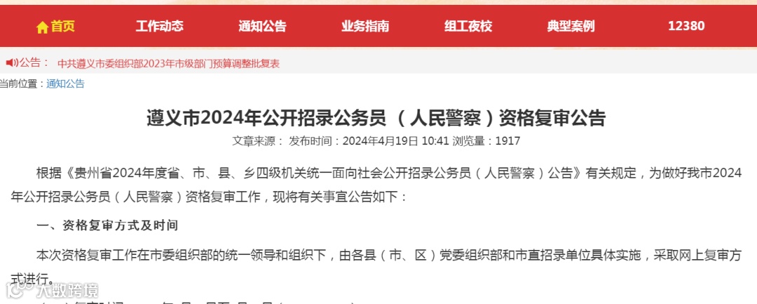 根据《贵州省2024年度省、市、县、乡四级机关统一面向社会公开招录公务员(人民警察)公告》有关规定,为做好我市2024年公开招录公务员(人民警察)资格复审工作,现将有关事宜公告如下: