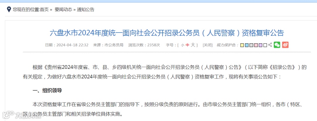 (二)六盘水市2024年度公开招录公务员(人民警察)面试工作拟于5月11日、12日进行。发布的各项招录信息都将在《招录公告》指定的凉都先锋党建云(http://www.lpszzb.gov.cn)和六盘水市人民政府网(http://www.gzlps.gov.cn)上进行公布,请报考人员密切关注。网站公布的招录信息,如因报考人员未阅而引起的后果由报考人员本人承担。同时,我市公务员主管部门不举办、不委托任何机构举办任何形式的培训班、辅导班,请广大考生不要受虚假信息的影响,以免上当受骗。
