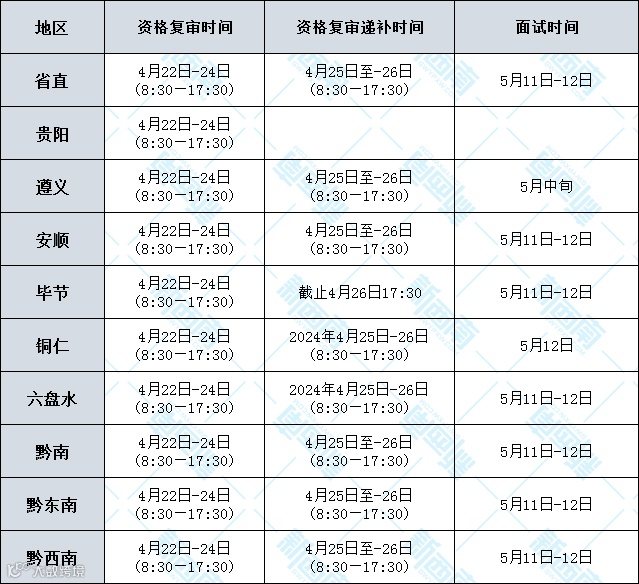 (二)贵州省2024年度省、市、县、乡四级机关统一面向社会公开招录公务员(人民警察)的面试工作拟于2024年5月11日、12日进行,届时将提前发布面试公告,请广大考生密切关注。