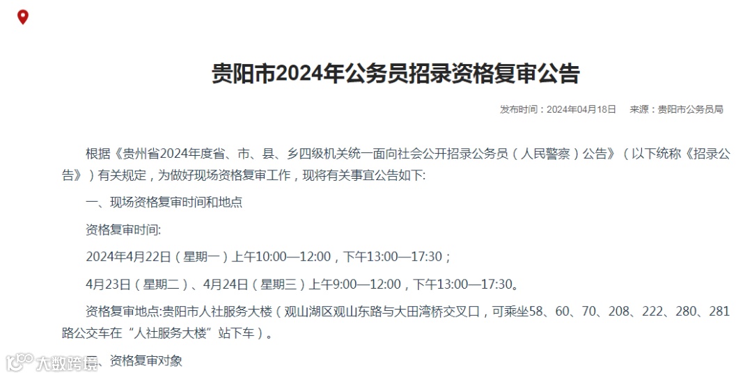 根据《贵州省2024年度省、市、县、乡四级机关统一面向社会公开招录公务员(人民警察)公告》(以下统称《招录公告》)有关规定,为做好现场资格复审工作,现将有关事宜公告如下:
