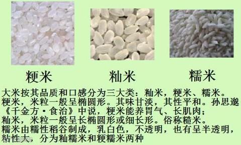 很多人都分不清籼米、粳米、糯米等,那您知道籼米、粳米、糯米和黑米的区别吗?相关人士告诉我们,按口感有糯米和粘米,粘米分粳米和籼米。粳米比较粗短,广东人称之“肥仔米”,煮的粥饭比较绵软,常见的东北米、珍珠米、江苏圆米都属于粳米。籼米比较修长苗条,煮的饭比较松爽,丝苗米、猫牙米、泰国香米都属此类。两广、福建多种籼稻,北方多种粳稻。
