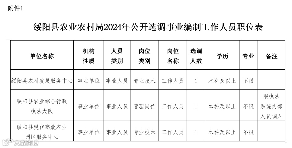 绥阳县农业农村局2024年公开选调事业编制工作人员公告