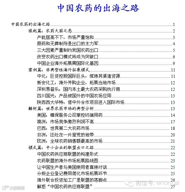 以Top 6 公司:先正达、拜耳、巴斯夫、陶氏益农、孟山都、杜邦和非专利公司:、马克西姆阿甘(中国化工集团)、新农、住友化学、联合磷化、富美实、爱利思达、科麦农、组合化学、日本石原、日本三井、日本曹达、世科姆、日本农药株式会社这全球销售排名前20位的国际农化公司为例,分析他们的市场运营之道,可以总结出一个国际化企业具备的特征和属性,我们将其定义为“国际化基因”。