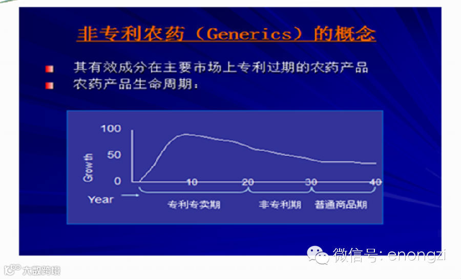 中国农药企业要在专利化合物的自主研发能力上大力投入是很难见效也是没有必要的。看一看下图世界各农药市场份额分布示意图就可以明白。专利农药市场目前仅占世界整个市场份额的30%,另外70%的市场份额属于非专利市场和没有任何限制的普通商品农药市场。这70%的非专利市场足够国内农药企业来吃。