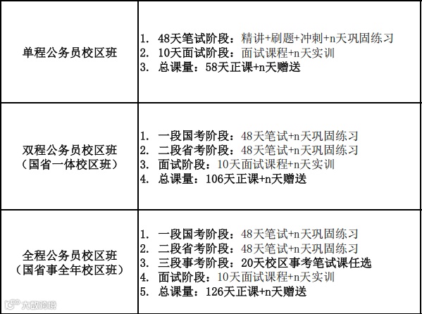 针对国考的单程班次,总课量58天正课+N天赠送